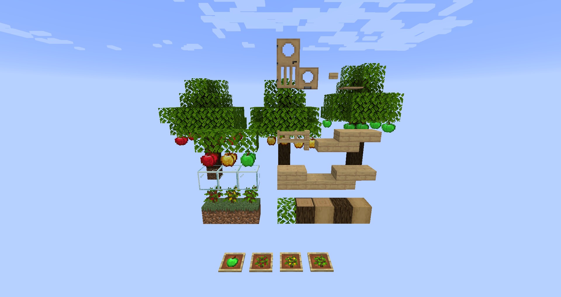 Каждое дерево генерируется с яблоками, которые работают как урожай, что добавляет интересные элементы в игру. Мод также включает новый вид древесины, который можно использовать как для строительства, так и для создания декоративных элементов.