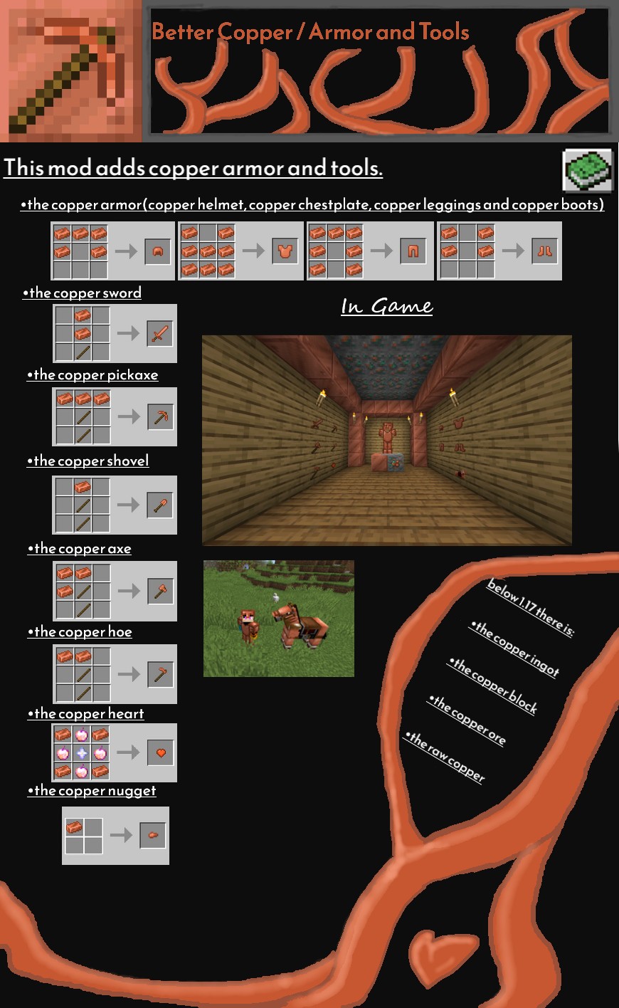 Итак, если вы ищете способ сделать свою игру в Minecraft более захватывающей и разнообразной, мод Better Copper / Armor and Tools — это отличный выбор. Откройте для себя уникальные возможности, которые предоставляет медь, и погрузитесь в мир новых приключений!