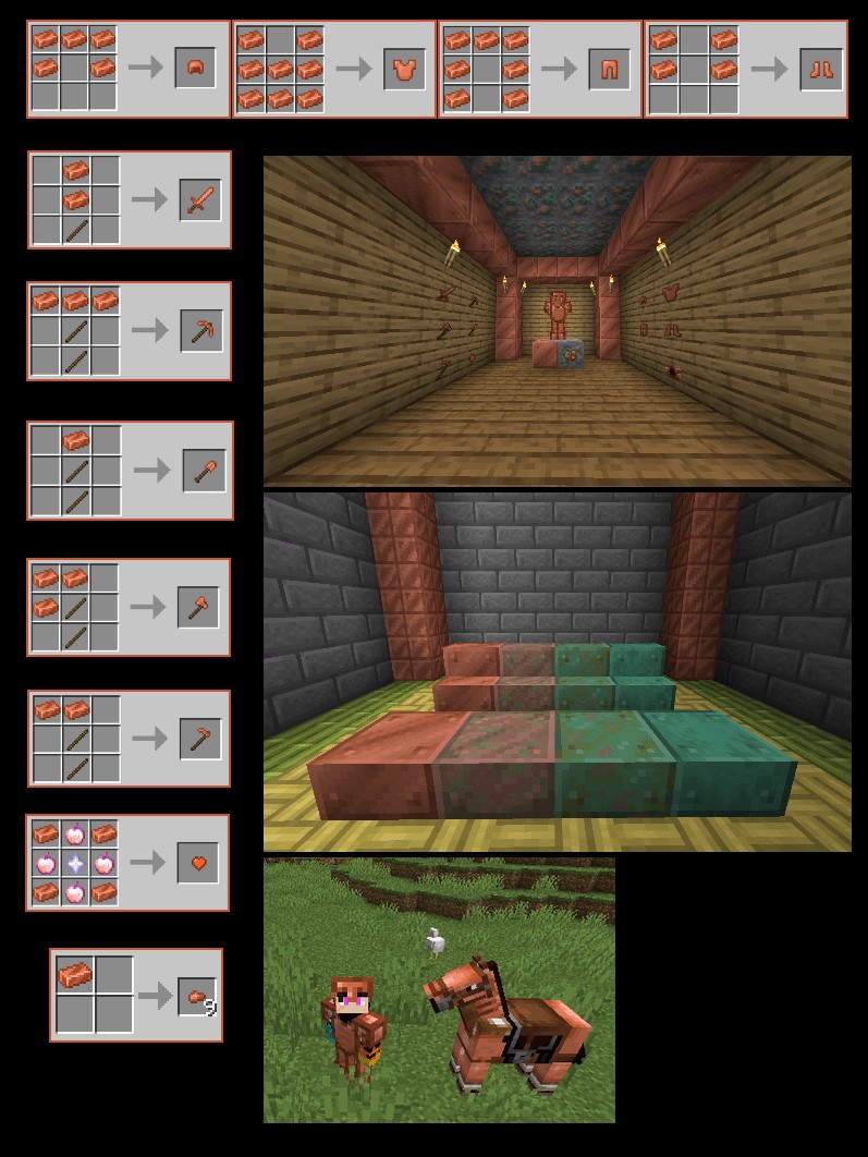 С Better Copper вы сможете улучшить свои строительные проекты с помощью новых медных блоков и décor’ов. Этот мод акцентирует внимание на использовании меди - одного из наиболее недооценённых материалов в Minecraft. Теперь, когда материалы становятся основой вашего выживания, крафт медных инструментов и брони будет иметь высокий приоритет.