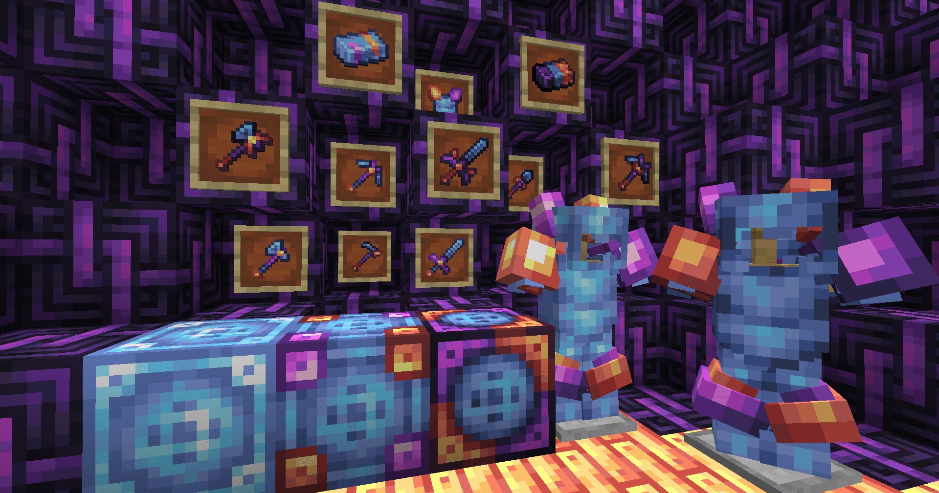 Ищите карточные наборы в сундуках, сражайтесь с мобами или обменивайтесь с Пиглинами для получения уникальных карточек. Каждый набор предлагает свою уникальную тематику и возможности!