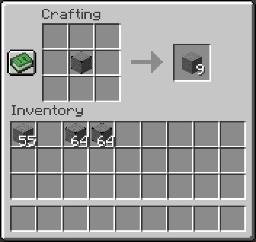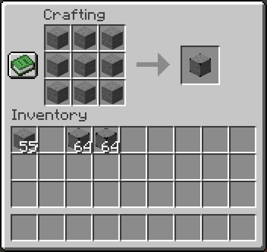 Чтобы создать упакованный блок, откройте обычную верстак и разместите 9 нужных блоков в сетке 3x3. После создания упакованного блока его можно декомпрессировать, просто поместив его в инвентарь или на верстак, получая обратно оригинальные блоки.