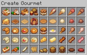 Мод Create Gourmet привносит в мир Minecraft новые кулинарные горизонты, добавляя множество уникальных продуктов и рецептов. Этот мод предлагает игрокам разнообразие блюд, таких как сыр, масло, круассаны, бекон, жареная курица и другие лакомства. Каждое из этих блюд требует использования механизмов из мода Create, что создает новые вызовы для геймеров.