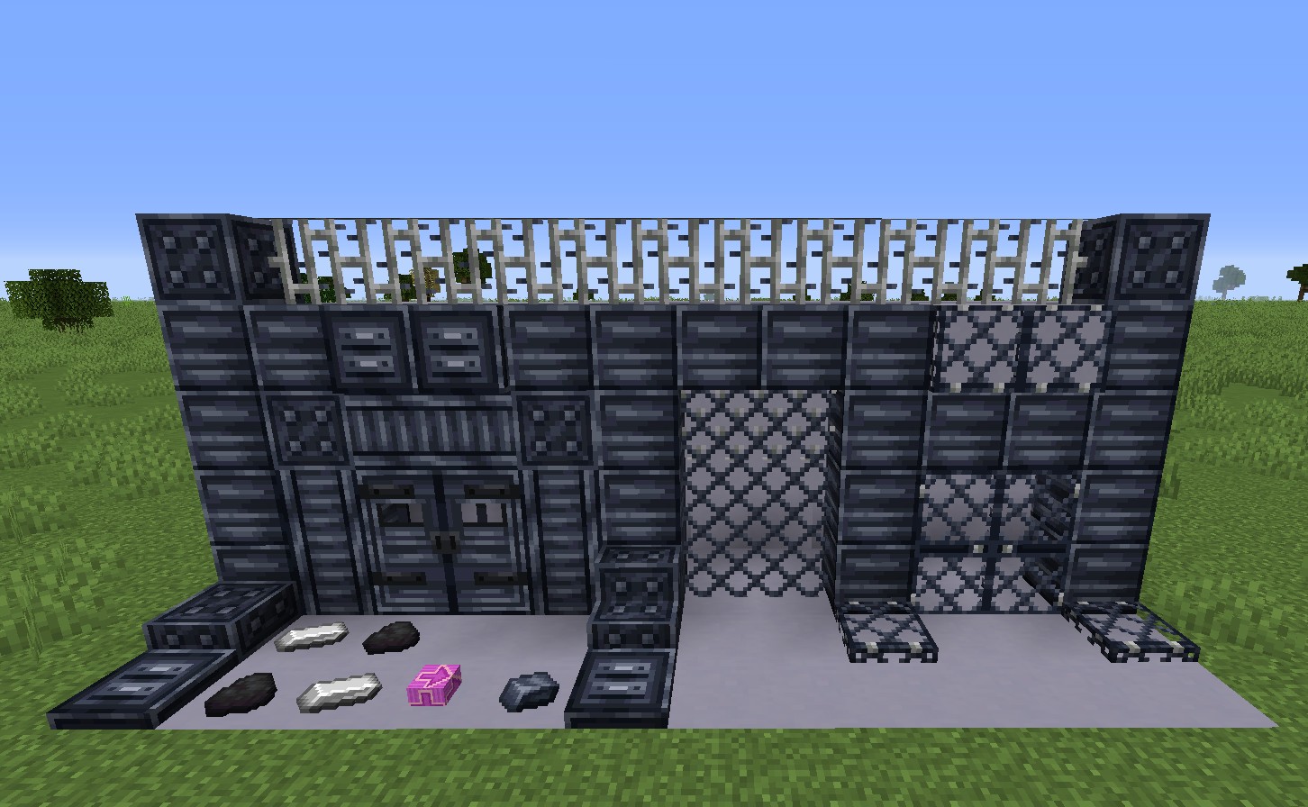 - Индустриальные Железные Блоки: Потемневшие металлы, созданные из угля и железа, придадут вашим заводам стильный вид благодаря множеству вариантов.