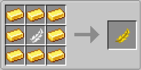 Мод Golden Feather (RPG Theme) привносит в мир Minecraft совершенно новые возможности! Теперь вместо золотых яблок у вас есть шанс создать золотые перья. Процесс создания предельно прост: для этого вам понадобятся перья и золото, и ваш инвентарь пополнится уникальным предметом.