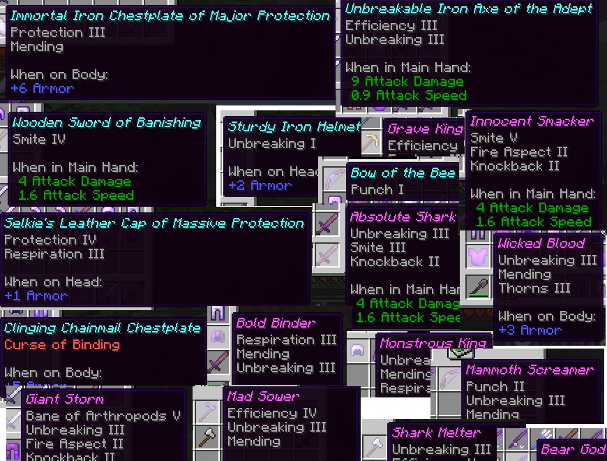 Мод Looot для Minecraft Forge представляет собой уникальный инструмент, который расширяет возможности использования таблиц loot, предоставляя разработчикам других модификаций и дата-паков дополнительные утилиты. Этот мод не добавляет контент в игру, но предлагает мощный функционал для создания случайных названий для зачарованных предметов, что значительно разнообразит игровой опыт и усиливает элементы крафта и охоты на трофеи.
