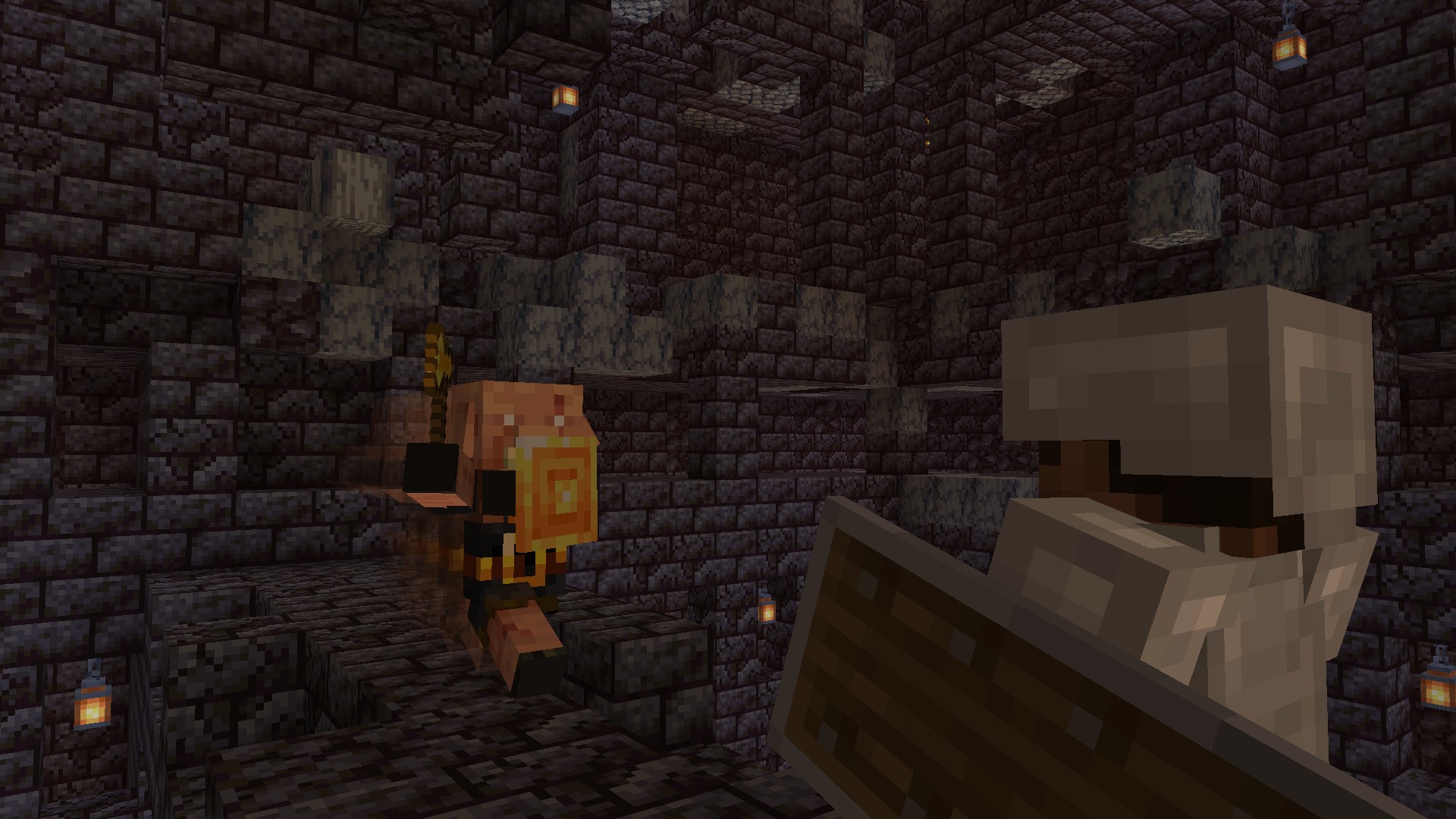 Пиглин Бруты получили особую атаку, делая их более опасными противниками. Они теперь могут использовать специальный щит — Баклер, с помощью которого они проводят мощные атаки на противников, нанося серьезный урон и откидывая их.