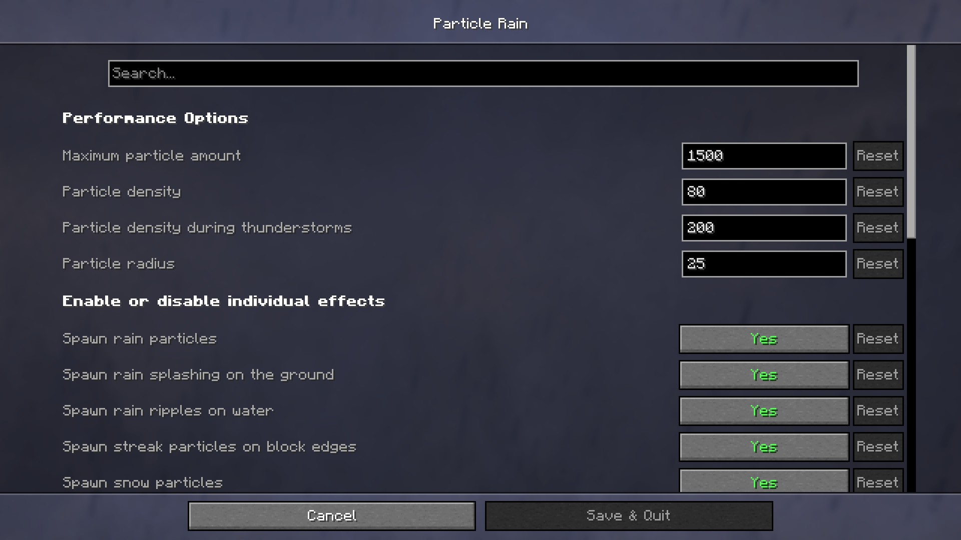 Чтобы минимизировать лаги, попробуйте уменьшить радиус, плотность или максимальное количество частиц в настройках. По умолчанию мод позволяет создавать до 1500 частиц, что большинство систем обрабатывают без проблем.
