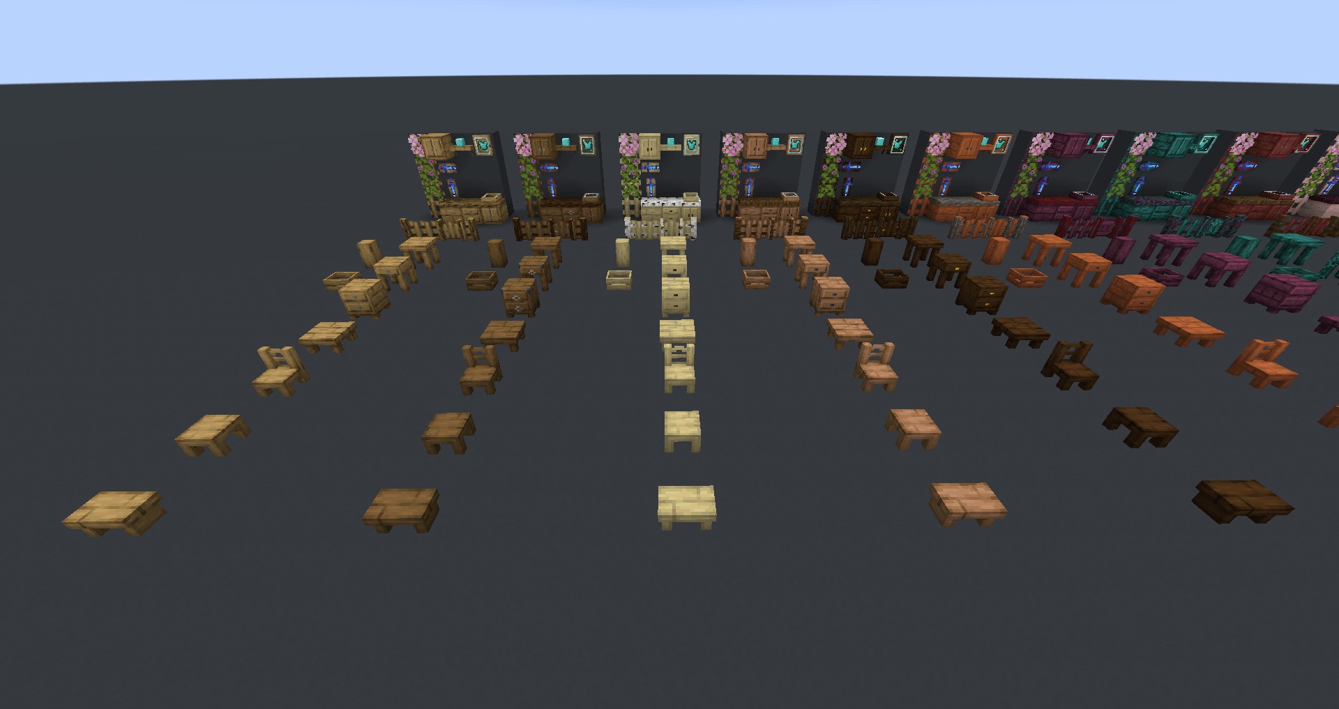 Ваша игра станет более яркой и уютной с новыми элементами: креслами, столами и декором, которые идеально вписываются в ванильный стиль Minecraft. Идеально подходит для создания комфортных жилых пространств и стильных административных зданий.