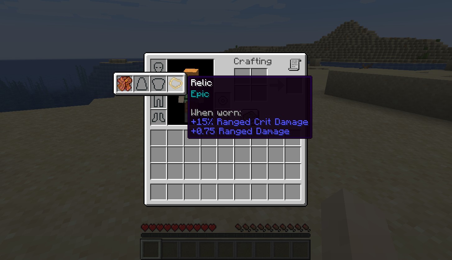 В RelicEx представлены четыре типа реликвий: амулеты, броня, головные уборы и кольца. Эти реликвии могут выпадать из мобов или находиться в сундуках. Каждый предмет имеет уникальные случайные атрибуты, которые активируются при их надевании в качестве тринкетов или в соответствующих слотах брони. Реликвии варьируются от обычных до легендарных, обладая возможностью иметь до пяти атрибутов, что делает их весьма ценными!