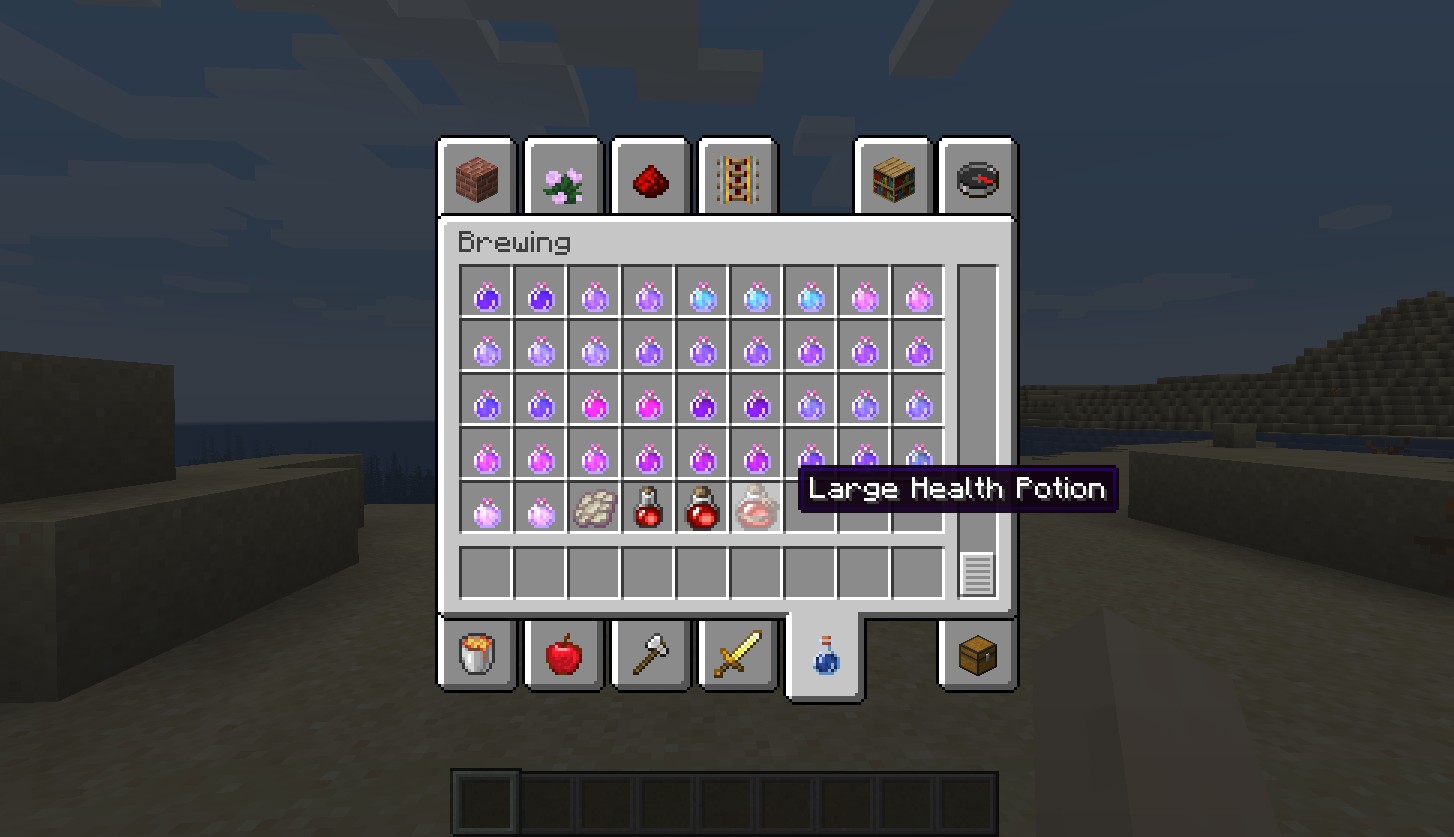 Мод предлагает три вида зелий исцеления: малое, среднее и большое. Эти зелья могут выпадать из мобов и восстанавливать от двух до шести сердец здоровья, в зависимости от их размера.