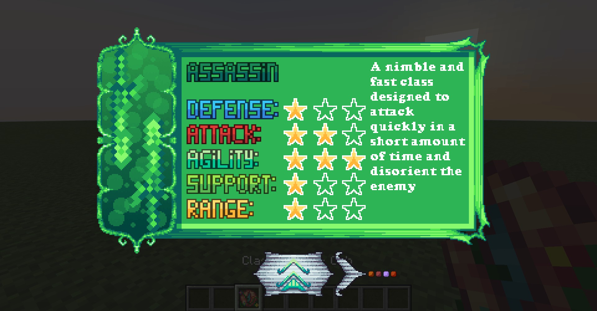 Представляем вашему вниманию мод ⚔️ RPG style More Weapons! для Minecraft, который перенесет вашу игровую сессию на новый уровень приключений и сражений! В этом моде вы сможете погрузиться в захватывающий мир ролевых классов, имея возможность выбирать между тремя уникальными классами: Берсерк, Ассасин и Паладин. Каждый класс предоставляет доступ к девяти мощным оружиям и девяти комплектам брони, что позволяет создать уникальный стиль игры.