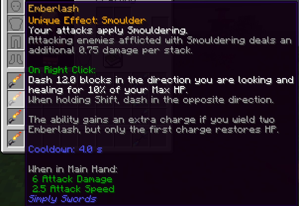 Мод Simply Swords: Overhaul предоставляет игрокам уникальную возможность улучшить свой игровой опыт в Minecraft, обновляя и адаптируя 9 уникальных мечей. Этот аддон для Simply Swords исправляет ошибки и делает использование мечей более удобным и интуитивно понятным. С Among the new features are enhancements for the following swords, maintaining their оригинальные концепции.