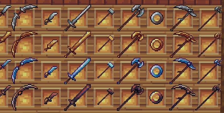 Улучшенные текстуры мечей создают яркую атмосферу игры.