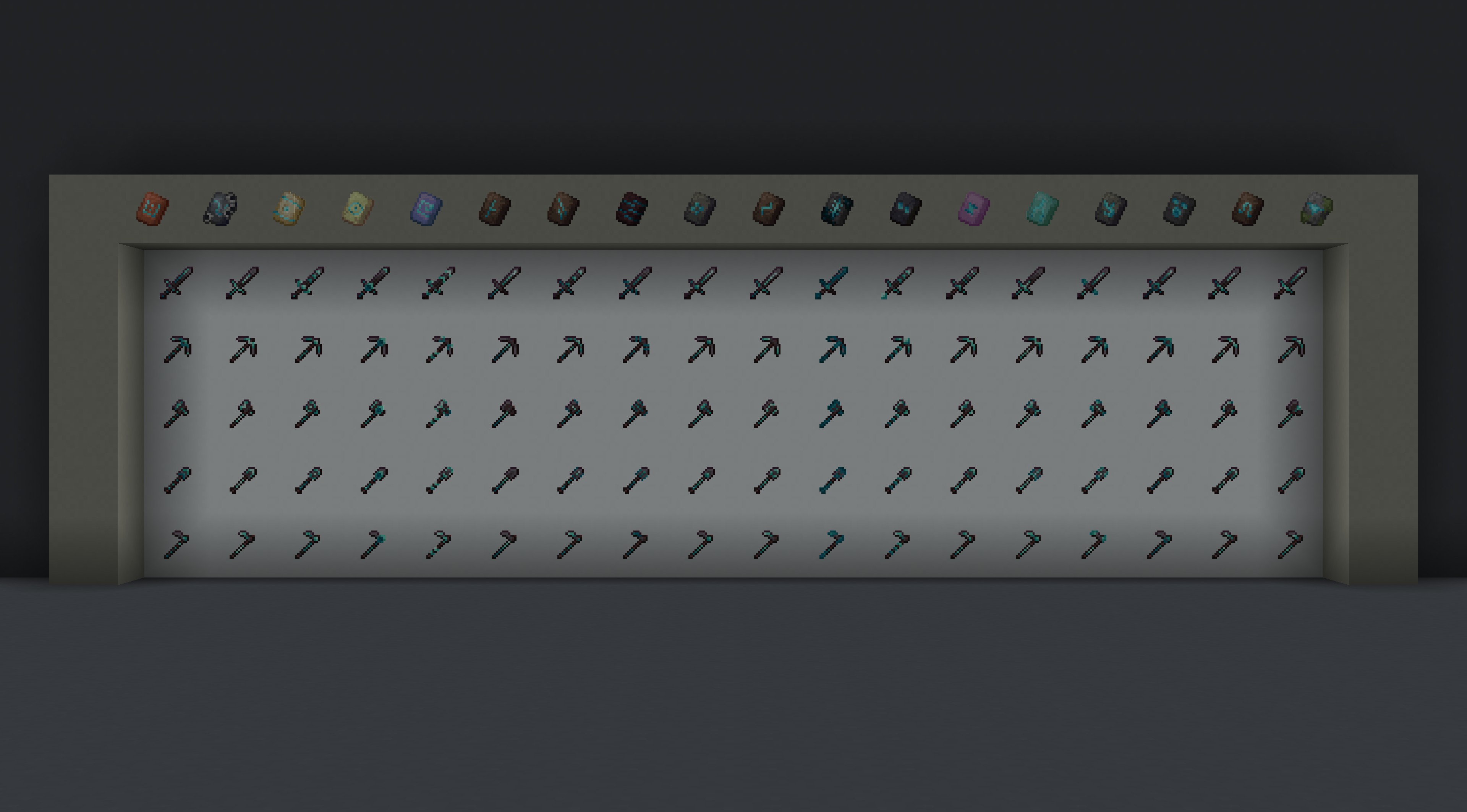 Мод Trimmable Tools для Minecraft радикально меняет представление о ваших инструментах! Теперь вы можете добавлять стильные отделки на свои инструменты, используя существующие шаблоны кузнечного дела. Эта уникальная возможность позволяет вам превращать стандартные инструменты в настоящие произведения искусства.