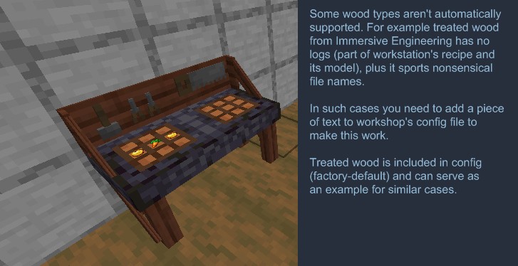 С версии 1.14 мод поддерживает все типы древесины, которые есть в ваших других модах, благодаря автоматическому интефейсу. Не забудьте, что для оптимальной работы рекомендуется использовать Dynamic Asset Generator. Этот мод также имеет резервную подсистему на случай, если вам это необходимо.